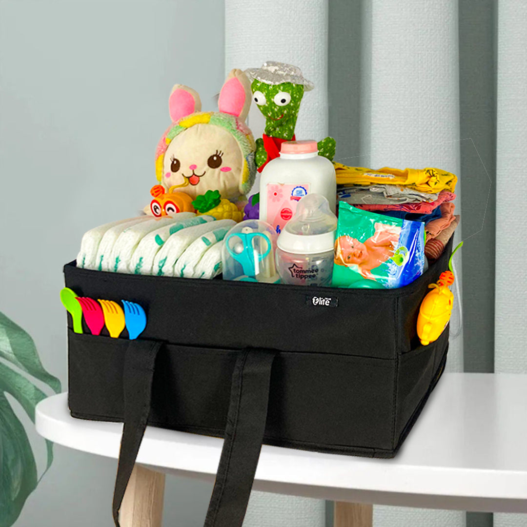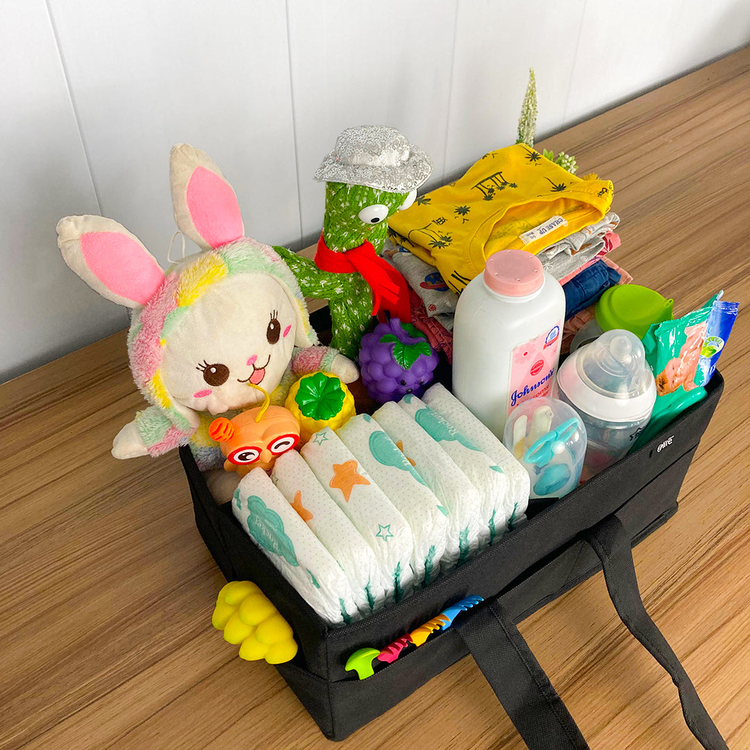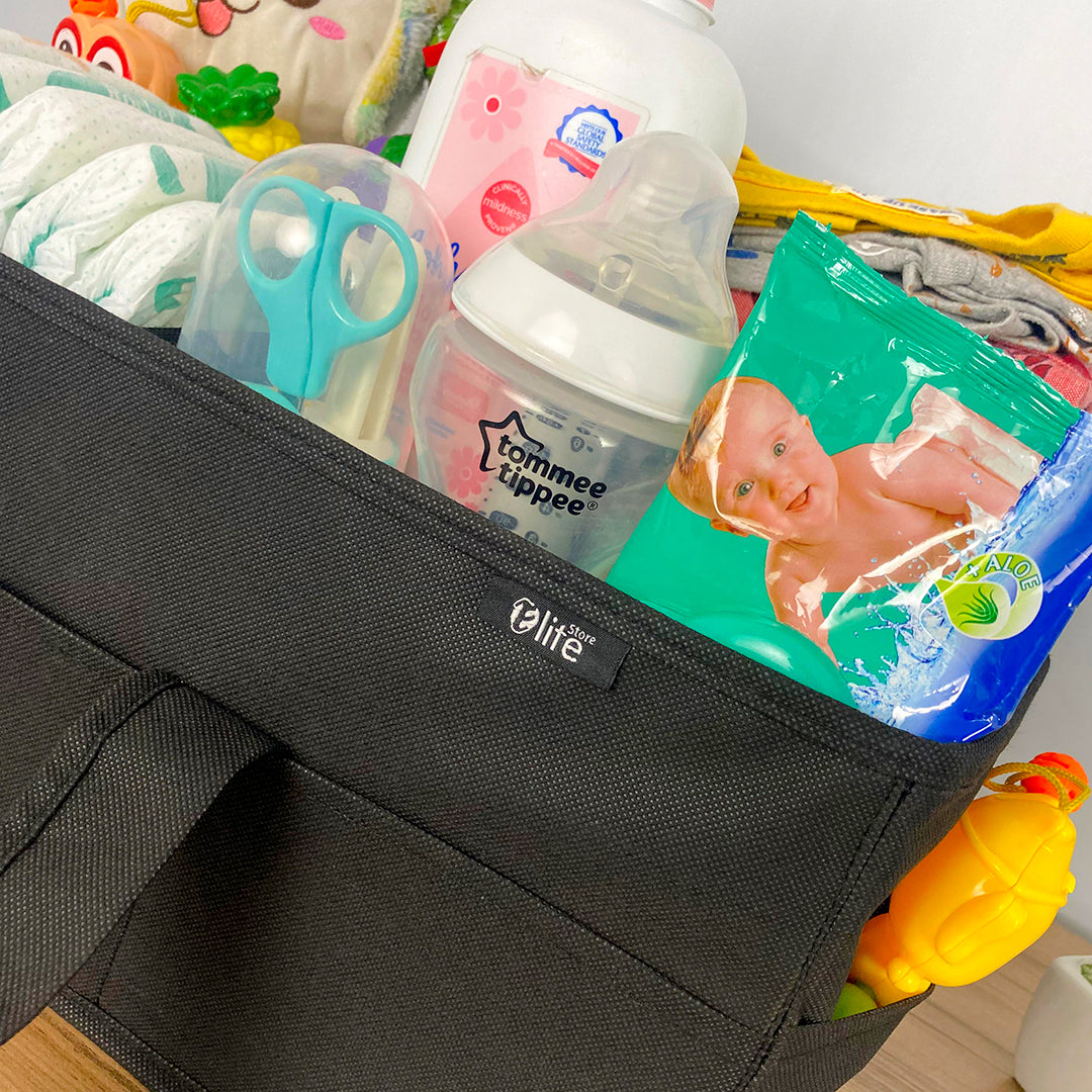 Our Diaper Caddy Organizer is designed to make diaper changes a breeze! This convenient storage solution keeps all your baby's essentials organized and easily accessible. With multiple compartments and pockets, you can store: