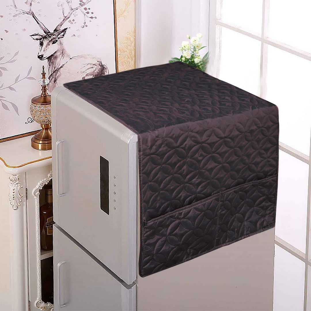 Dustproof Microfiber Quilted Refrigerator Cover With Side Pockets