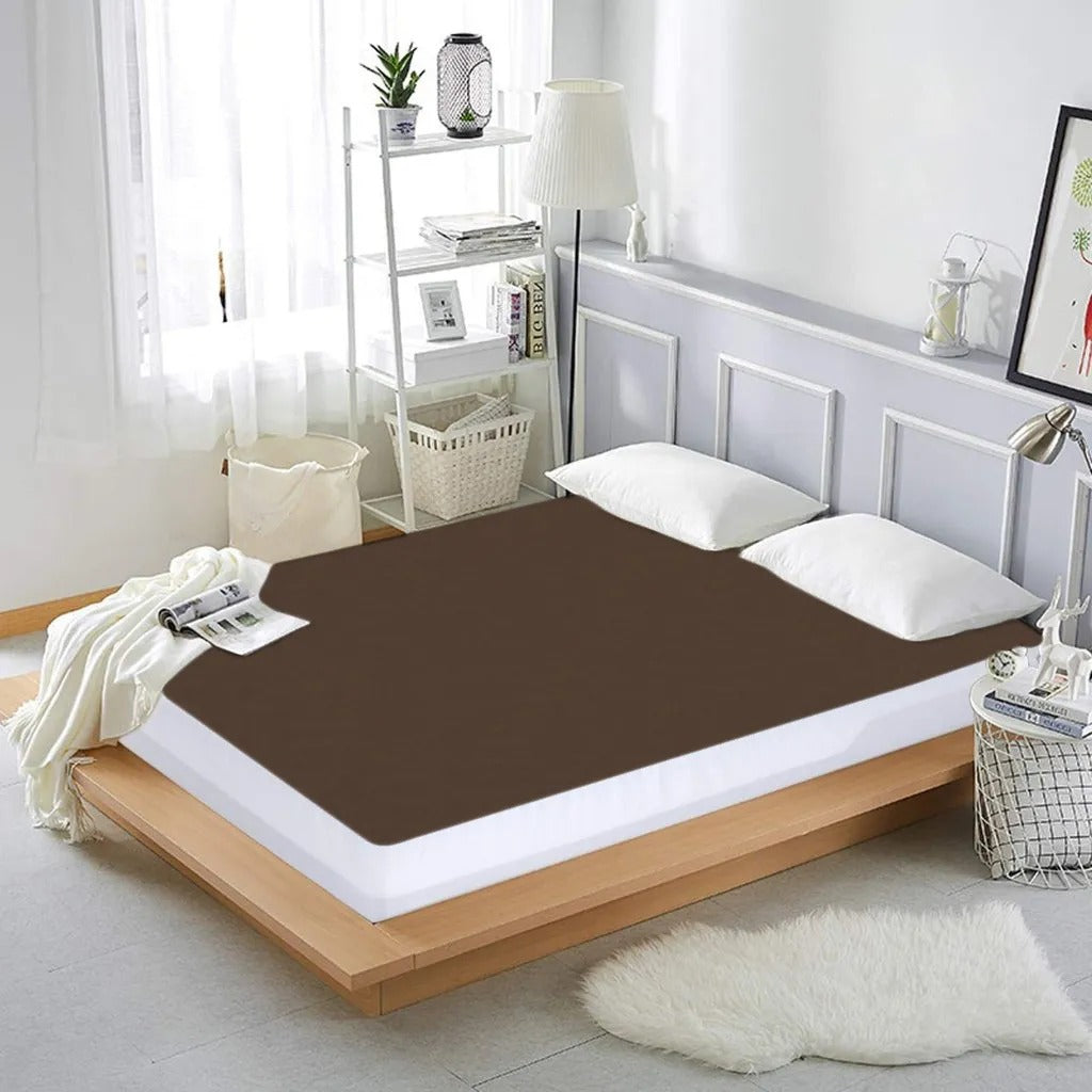 Dyed Terry Towel 100% Waterproof Fitted Mattress Protector In Brown Color