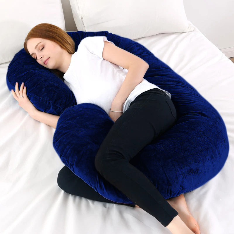 - Pregnancy pillow helps support your back, hips, knees, neck, and head to help ease discomfort associated with pregnancy.