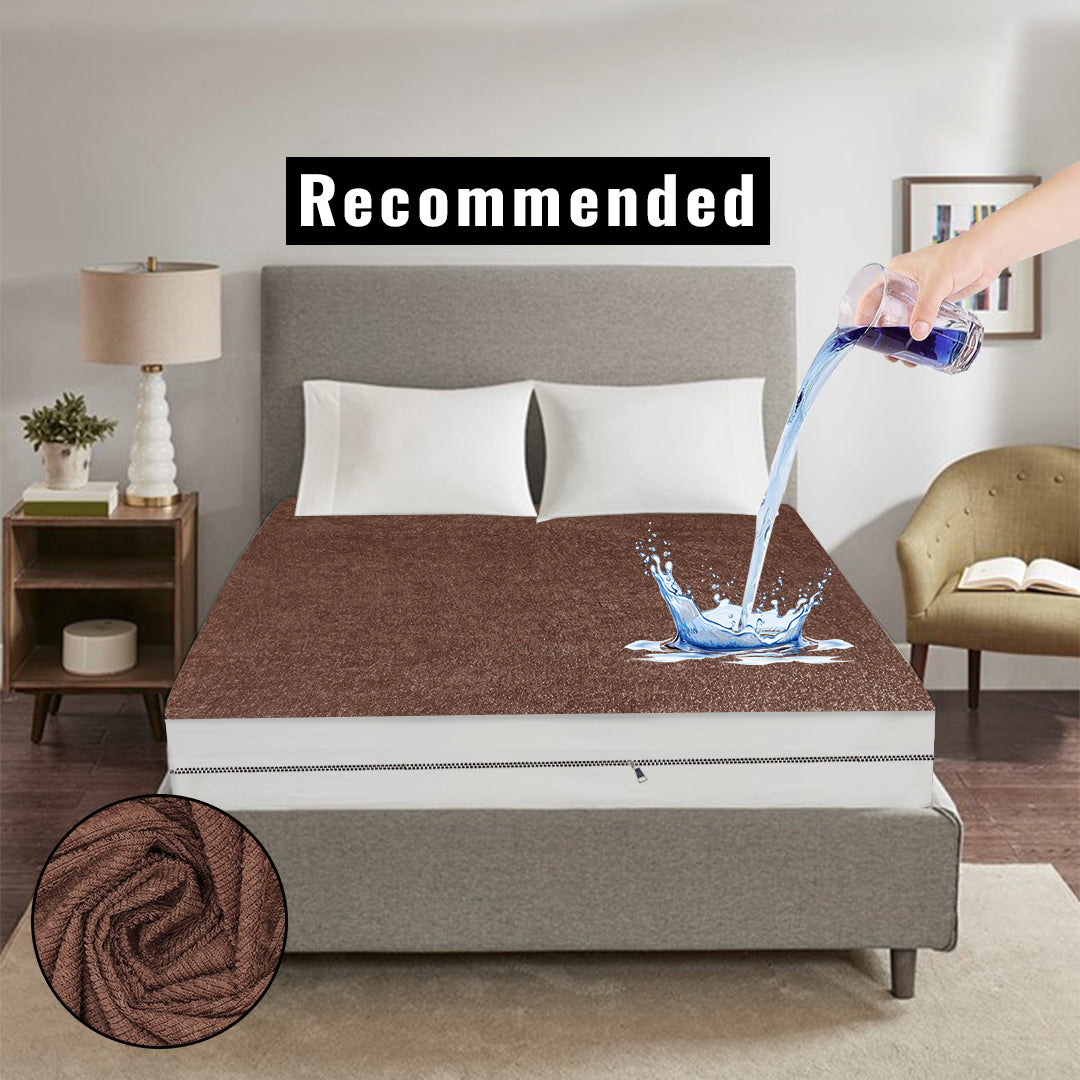 Premium Terry Cotton 100% Waterproof Zipper Mattress Protector In Brown Color