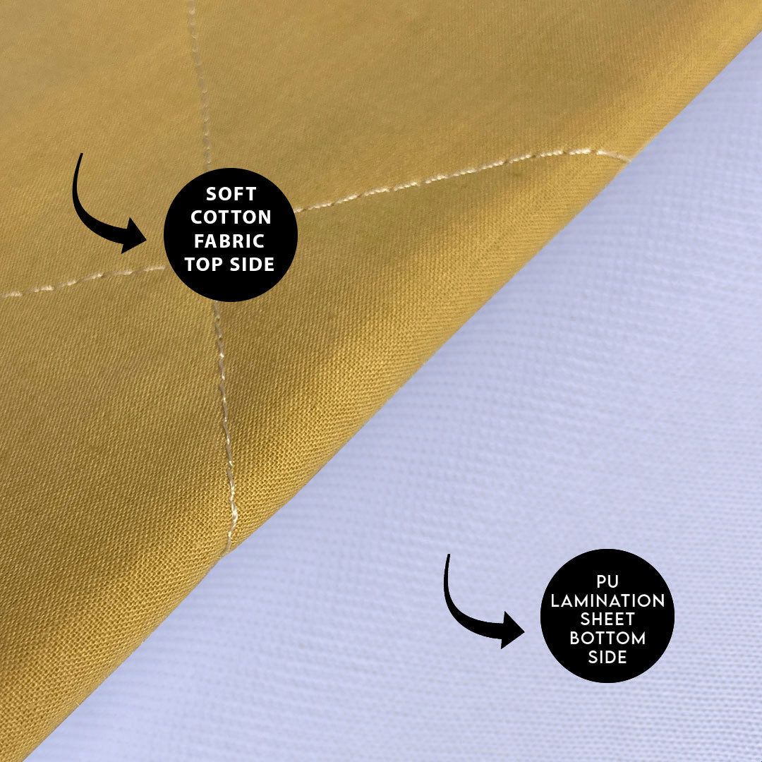 Comes With 4 Layers๐ญ) Cotton Fabric.๐ฎ) Polyester Filling For Softness.๐ฏ) Non Woven Stuff๐ฐ) 20 GSM Lamination Sheet Which Makes It 100% Guaranteed Waterproof.