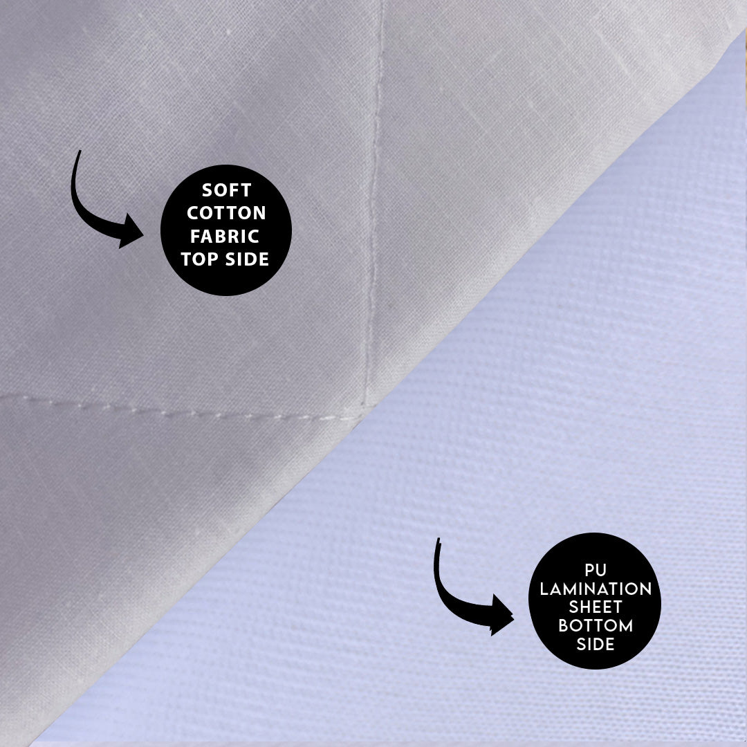Comes With 4 Layers๐ญ) Cotton Fabric.๐ฎ) Polyester Filling For Softness.๐ฏ) Non Woven Stuff๐ฐ) 20 GSM Lamination Sheet Which Makes It 100% Guaranteed Waterproof.